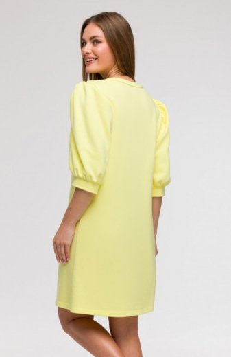 Bewear B291 sukienka z bufiastymi rękawami cytrynowa