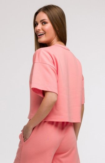 Bewear B294 bluza oversize z krótkimi rękawami koralowa