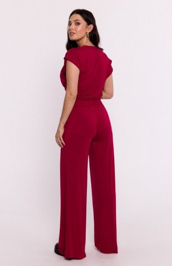 Bewear B289 spodnie wiskozowe z zakładką bordowe