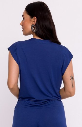 Bewear B288 bluzka wiskozowa na zakładkę niebieska