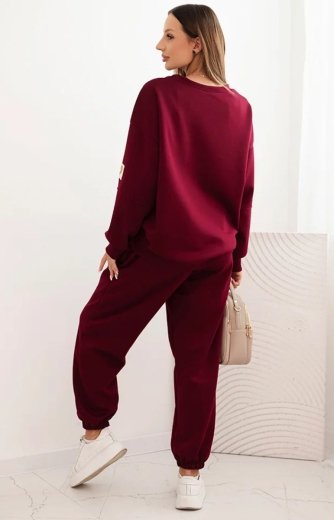 Komplet dresowy damski ocieplany bordowy
