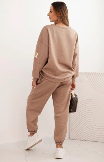 Komplet dresowy damski ocieplany brązowy