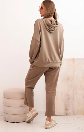 Komplet damski masełkowy z luźną bluzą i spodniami brązowy