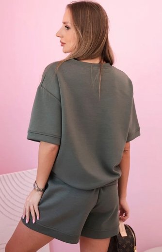 Dresowy komplet damski masełko z szortami khaki