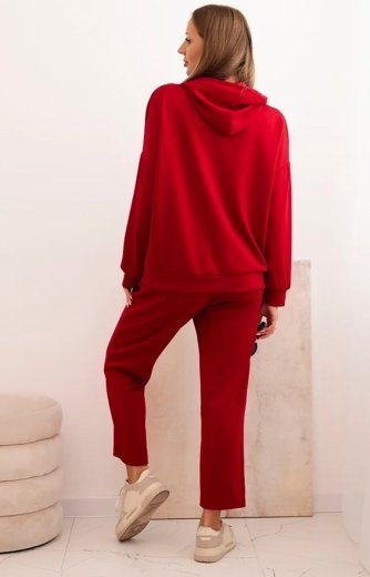Dresowy komplet damski masełko bluza z kapturem i spodniami bordowy