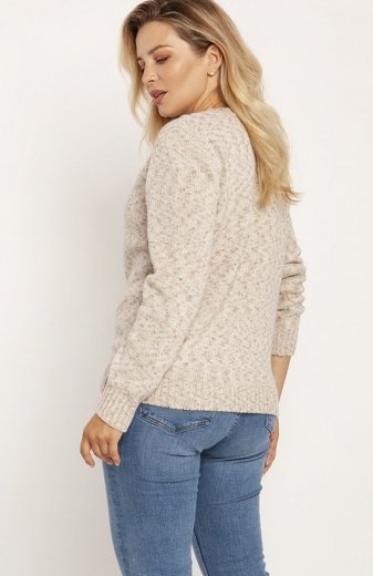 MKM SWE186 sweterek z dekoltem beżowy