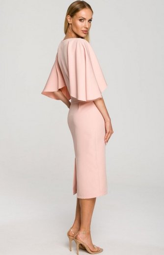 Sukienka z szerokimi rękawami pudrowa M698