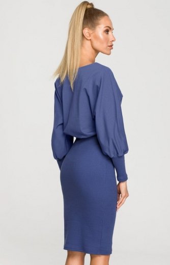 Niebieska sukienka z dopasowanym dołem M690