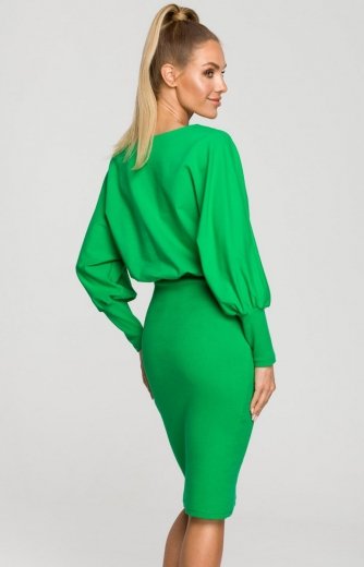 Sukienka z szerokimi rękawami zielona M698