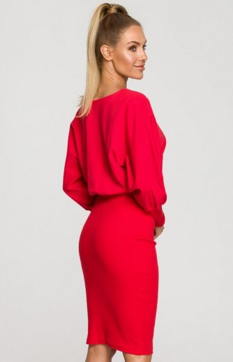 Czerwona sukienka z dopasowanym dołem M690