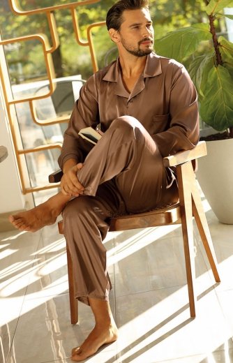Dkaren Lukas satynowa piżama męska brązowa