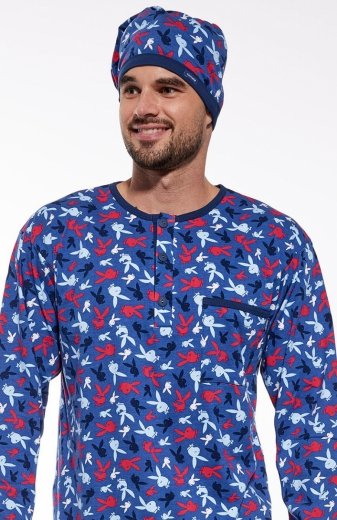 Dkaren Lukas satynowa piżama męska granatowa