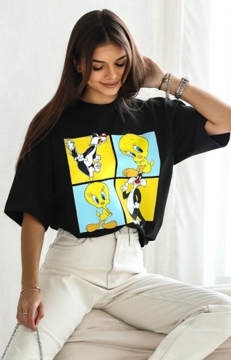 T-shirt damski Tweety kwadraty czarny