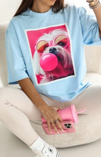 Oversizowy t-shirt Maltańczyk okulary błękitny