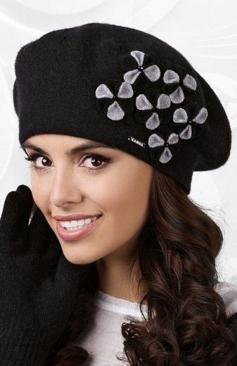 Kobiecy beret z kwiatuszkami Arizona