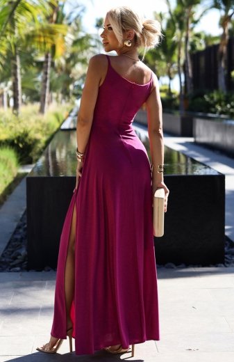 Stylove S350 sukienka ołówkowa z rozcięciem śliwkowa