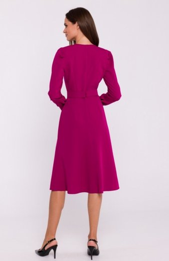Stylove S363 sukienka midi z kołnierzem śliwkowa