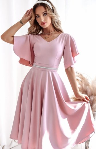 Duet Tifani rozkloszowana sukienka midi brudny róż