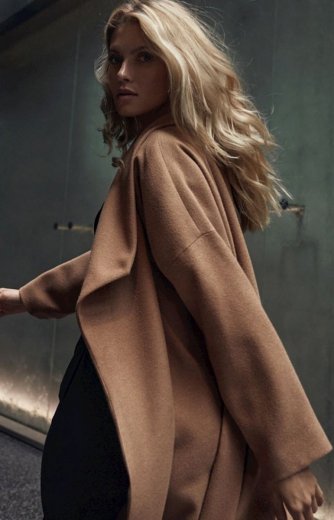 Beżowy jesienny płaszcz damski M713