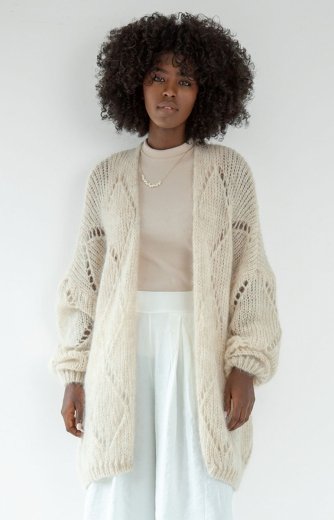 *Fobya F1964 zapinany oversizowy kardigan damski ecru