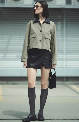 Dla odważniejszych kobiet podkolanówki mogą stać się stylowym akcentem w stylizacjach inspirowanych modą uliczną, zestawione z masywnymi butami, np. bikerami z klamrami lub sneakersami.