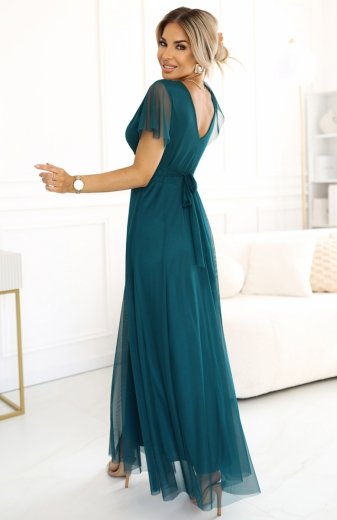 Numoco 562-4 NASTIA długa sukienka z dekoltem i krótkim rękawkiem