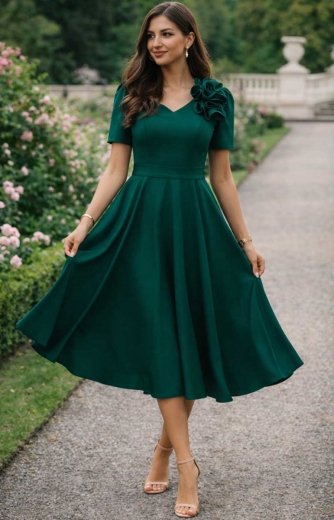Duet Aurelia rozkloszowana sukienka midi butelkowa