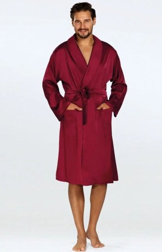 Dkaren Christian satynowy szlafrok męski bordowy